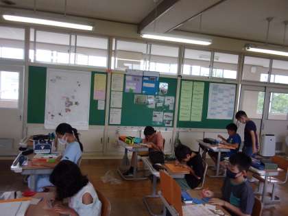 家庭科の学習では、1学期で身に付けた力を生かし、フェルトを使ってマスコットを作っています。自分が表したいものに合う色や形を決めて、布を裁断したり縫い方の見通しをもったりしました。困ったときには友達と相談し、協力して活動を進めました。