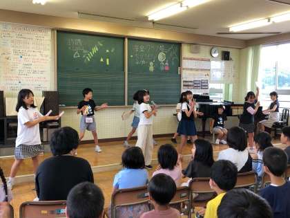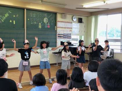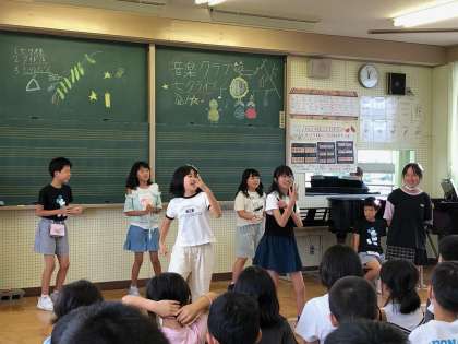 7月12日音楽クラブ 七夕ライブ 公開日 2023/07/12 更新日 2023/07/12 学校運営協議会 朝日っ子タイムに、たなばたライブを行いました。「七夕様」や人気のアニメの曲を披露しました。リコーダー演奏や歌、ダンスなど、見に来てくれたみんなといっしょになって楽しみました。