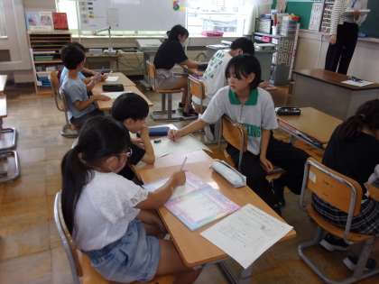 7月14日(金) 地区児童会 公開日 2023/07/14 更新日 2023/07/14 朝日小学校NEWS 登校班で安全に登校ができているか、夏休みを安全に過ごすために気を付けたらよいことはどのようなことか等について確認しました。 「ラジオ体操の日がいっぱあるね、早起きしないと」 「用水の近くは危ないです」 と、子供たちは考えたことを伝え合いました。