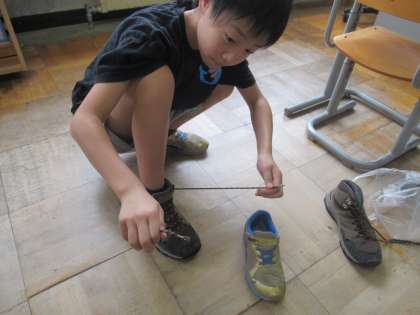 7月20日(木)6年生 立山登山の準備 公開日 2023/07/20 更新日 2023/07/20 6年生 登山靴の履き方をみんなで確認しました。レンタルをした子供たちは、実際に履いて紐の縛り方やかかとの合わせ方を確かめました。