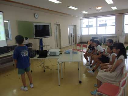 7月21日(金) 3年生 お楽しみ集会 公開日 2023/07/21 更新日 2023/07/21 3年生 学級活動の時間に、1学期最後のお楽しみ集会を行いました。バスケットボールやリレーで元気よく体を動かしたり、カラオケで歌ったり踊ったりしました。みんなで楽しい時間を過ごしました。