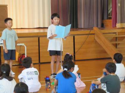 3年生と5年生の代表が、1学期にがんばったことを発表しました。