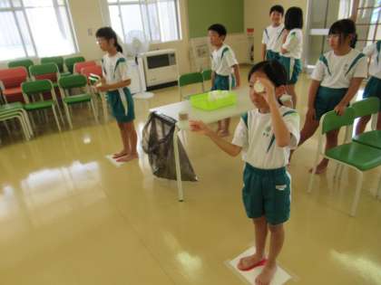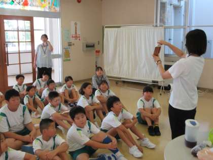 養護教諭より、熱中症の対策についての保健指導「冷え冷えペットボトルの作り方」を行いました。今後も暑い日が続きますので、ぜひ暑さ対策の参考にしていただけたらと思います。