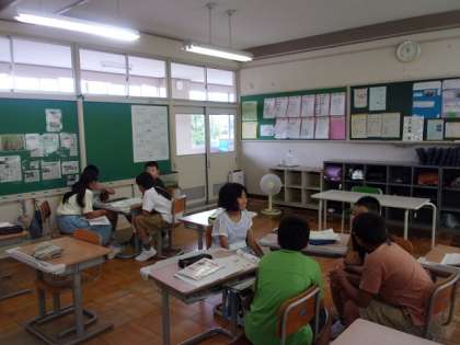 子供たちは、対話の練習として、「担任に犬と猫のどちらをおすすめするか」というテーマで2チームに分かれ、それぞれの考えを伝える話し合い活動を行いました。