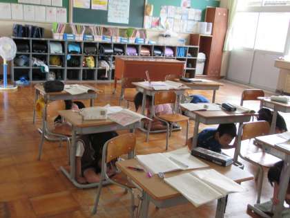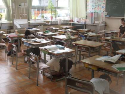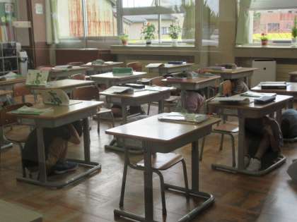 9月1日(金)シェイクアウト訓練 公開日 2023/09/01 更新日 2023/09/01 学校行事 本日9月1日は防災の日です。地震災害の発生に備えて、シェイクアウト訓練を行いました。地震が発生したら、頭を守り、すぐに机などの下に隠れます。 皆、真剣に取り組みました。ご家庭でも、災害時の行動について、お子さんとお話してみてください。
