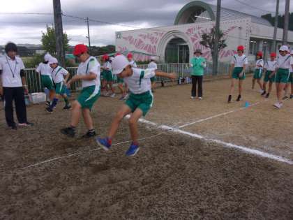 9月5日(火)上学年 体育教室 公開日 2023/09/05 更新日 2023/09/05 4年生 体育教室で走り幅跳びをしました。飛びやすい方の足を決めたり、リズムよく高く飛ぶこつを丁寧に教わりました。月末の校内陸上記録会に向け、少しでも記録を伸ばそうと、何度もチャレンジしています。
