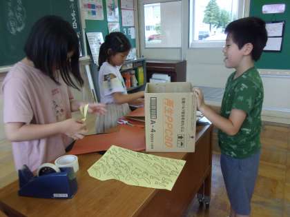 3年生 係活動 公開日 2023/09/06 更新日 2023/09/06 3年生 2学期の係活動をしました。劇で使う小道具を作ったり、お楽しみ会の相談をしたりしました。友達と協力しながら活動しました。