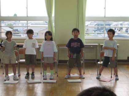 今日は合唱の練習です。初めて歌う歌なので、歌詞をみながら一生懸命歌っています。元気に歌うところ、やさしく歌うところに気を付けながら歌いました。