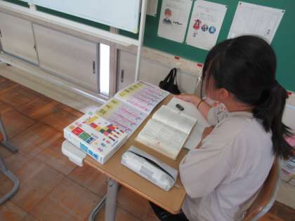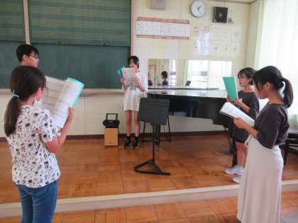 国語辞典を開いて漢字を調べたり、高音パートで集まって歌練習をしたりするなど、自分をパワーアップさせるためにできることを考えて取り組んでいます。