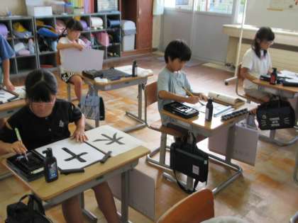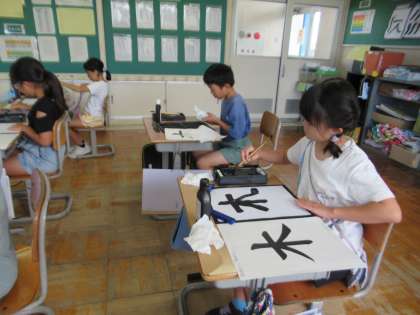 9月13日(水)3年生 書写の学習 公開日 2023/09/13 更新日 2023/09/13 3年生 毛筆で、右はらいを書く練習をして、「木」という字を書きました。背筋をのばして、静かに落ち着いて取り組みました。