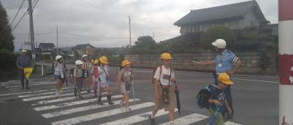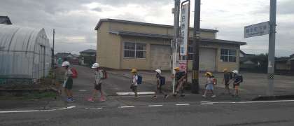 今日は6年生がいない登校班です。4年生や5年生が列の前後を守りながら登校しました。頼もしい姿です。