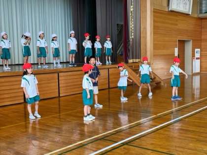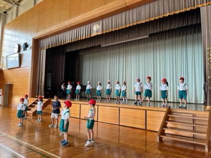 9月19日(月)1年生 うたのれんしゅう 公開日 2023/09/19 更新日 2023/09/19 1年生 学習発表会で発表する歌の練習を、体育館のステージで行いました。かけ声に合わせて、みんなで動いたり歌を歌ったりしました。どんな発表になるのか、楽しみです。