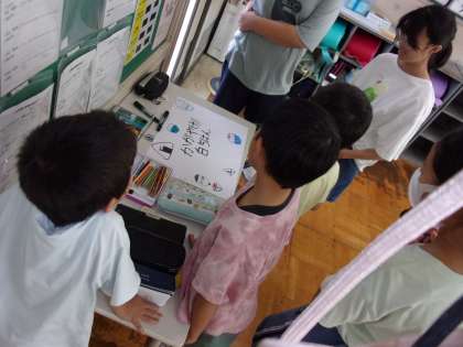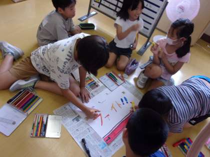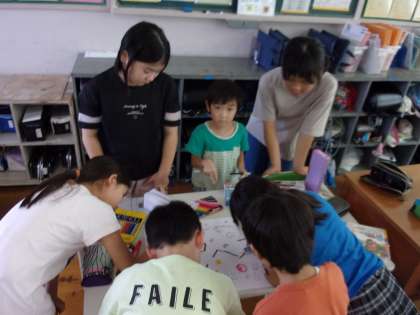 明日の陸上記録会に向けて、なかよし班毎の応援カードを仕上げました。それぞれの目当てやチームのみんなを応援するメッセージ等が書かれた、気力溢れるカードになりました。