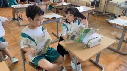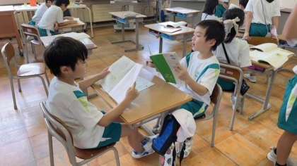 9月28日(木)2年生 国語の学習 公開日 2023/09/28 更新日 2023/09/28 2年生 「お手紙」を、がまがえるくん役とかえるくん役に分かれて、ペアで音読をしています。それぞれ、好きな場面の選んで読みました。