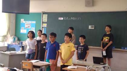 5年生と6年生の発表のつなぎの部分も、スムーズにいくように確認して声を出しています。4、5、6年生で一つになる発表の仕上がりが楽しみです。