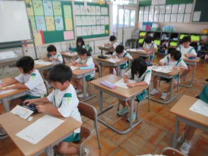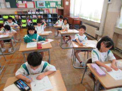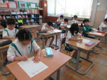 10月12日(木)1年生 はっけんかあど 公開日 2023/10/12 更新日 2023/10/12 1年生 あさがおのつるで作ったリースの絵を描いています。リースを作った感想や、お友達の作品を見て、どんなところがすてきかなどについて書きました。