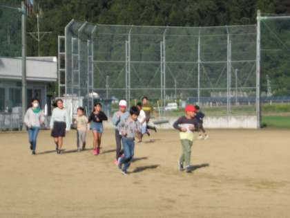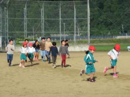 秋晴れの心地よい朝に、全校でグラウンドに出てマラソンの練習を,,各自のペースで走りました。中にはトラックを10周も走ったという子もいました。