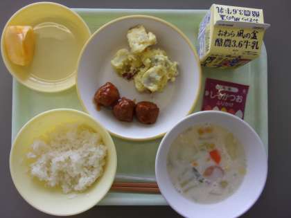 10月13日(金) 秋の味覚 公開日 2023/10/13 更新日 2023/10/13 朝日小学校NEWS 今日の給食は、サツマイモや柿など秋の味覚が盛りだくさんでした。もりもり食べて、明日の発表会を元気に迎えられそうです。