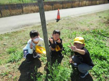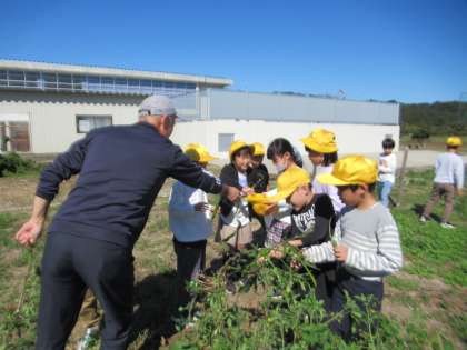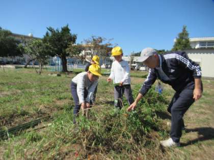 10月18日(水)2年生 農園にて 公開日 2023/10/18 更新日 2023/10/18 2年生 学校の畑の片付けをしています。育て終わった野菜の根を抜き取りました。その後は、かえるを捕まえたり、とんぼを追いかけたりしました。