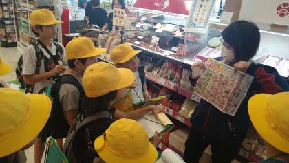 10月19日(木) 3年生 スーパー見学 公開日 2023/10/19 更新日 2023/10/19 3年生 商品の並び方、値下げシールの貼り方などの工夫を見つけました。バックヤードでの準備も見せていただき、初めて知ることがたくさんありました。