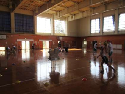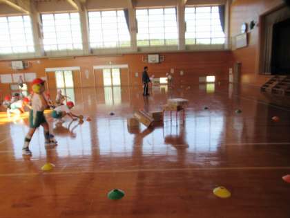 赤団白団に分かれて、的当てゲームを楽しみました。段ボールの的に向かって、協力してボールを投げました。