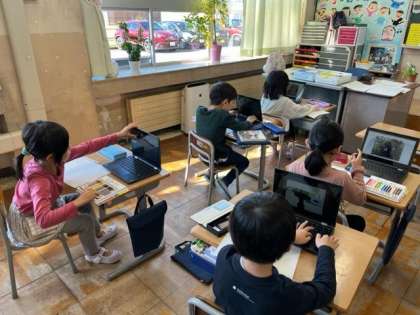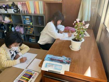 10月24日(火)1年生 しらせたいもののえをかこう 公開日 2023/10/24 更新日 2023/10/24 1年生 自分の家のペットや好きな花の絵を描きました。クロムブックで自分で撮影した写真を見たり、実物を観察したりしながら描きました。これから、知らせたいことを文章にしていきます。