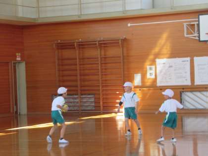 10月24日(火)1・2年生 体育の学習 公開日 2023/10/24 更新日 2023/10/24 2年生 チームで協力して的あてゲームをしました。ペアでボールをパスしあって、ゴールの的にボールを当てます。2年生が1年生に優しく声をかけて取り組んでいます。