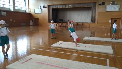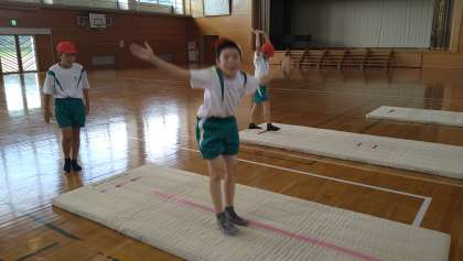 10月25日(水) 5年生 マット運動 公開日 2023/10/25 更新日 2023/10/25 5年生 膝を伸ばすこと、頭を入れて前転をすることなど、一人一人の課題を練習しています。回るたびに、「どう?できた?」「今のはよくなかった」などと振り返りながら、練習しています。