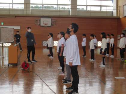 明日の区域連合音楽会に向けて、練習をしました。楽譜の記号に合わせて声の大きさを変えたり、思いを伝えるために歌い方を工夫したりしました。また、柔らかい表情で歌うために、みんなで大きな円になって、お互いの顔を見ながら歌いました。