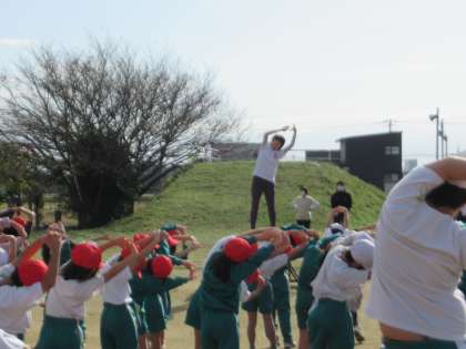 11月8日(水)マラソン大会その1 公開日 2023/11/08 更新日 2023/11/08 学校行事 秋晴れの気持ちのよい天候のもと、マラソン大会を行いました。ゲストランナーとして、磯野あずささんが来校してくださいました。 肩を回したり胸を開いたりと上半身のストレッチから、股関節を柔らかくするための運動まで、万全の調子で走れるよう丁寧に教えていただきました。
