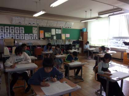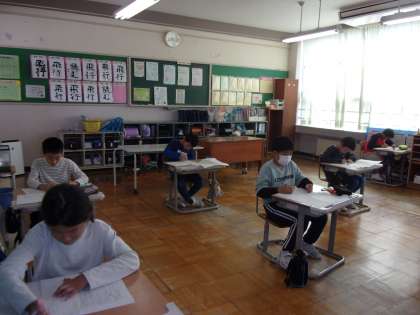 高学年は、国語と理科の問題に挑戦しました。20分間ずつ、集中して取り組みました。