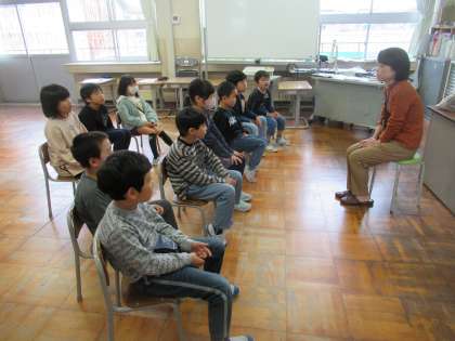 ストーリーテリングでは、「だごだご ころころ」という富山に伝わる民話を子供たち一人一人の目をみながらゆっくりと語りかけられ、子供たちは、物語の世界に引き込まれました。