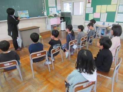 婦中図書館から2名の司書の方が来校され、ストーリーテリングとブックトークをしていただきました。前者は、本等の絵や文字を使わず、語りのみのお話のことで、後者は、一つのテーマに沿って本を紹介することです。