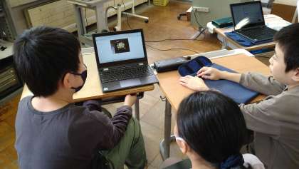 調理実習を終えてから、自分の家で作った味噌汁について、まとめたものを見合いました。「うちは昆布のだしでした」「じゃがいもから煮て、実を入れる順番に気をつけました」などと、伝え合いました。