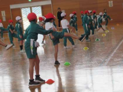 11月17日(金)体育教室その2 公開日 2023/11/17 更新日 2023/11/17 学校行事 下学年も上学年同様、「アイドル」の歌に合わせてダンスを踊りました。大好きな曲なので、みんなノリノリです。寒い体育館ですが、踊って体を動かすうちに暖かく感じてきました。リズムよく、歌いながら楽しく取り組みました。