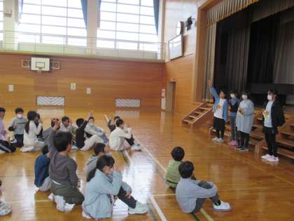11月20日(月)6年生 みんなで楽しく過ごすために 公開日 2023/11/20 更新日 2023/11/20 6年生 2、5年生が学校で楽しめる企画を考え、いきいきタイムにけいどろをしました。2年生が喜びそうな招待状のデザインや、5年生が本気で楽しめそうな遊びのルール等を考えました。