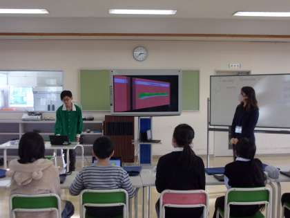 生き物を一つ選んで、どこに住んでいるか、何を食べるかなどについて、英語で文章を作りイラストを添えて、プレゼンをしました。