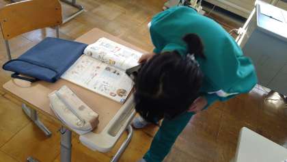 汚れていると、汚い、気分がよくないだけでなく、カビやダニ等による健康被害もあると知り、驚いた様子でした。今日は、教室の壁や掃除ロッカーの上に溜まりやすいほこりやクモの巣を見つけて、端末で写真を撮り、よごれやその掃除方法についてまとめました。