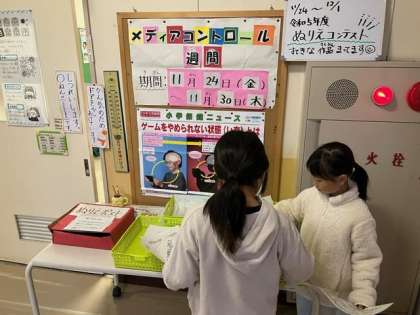 本日11月24日(金)から30日(木)までの一週間は、メディアコントロール週間です。それぞれが決めた目標をもとに、メディアの使い方を考えて生活していきましょう。ご家庭でのご協力を、よろしくお願いします。