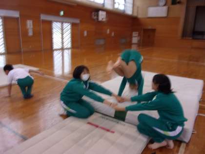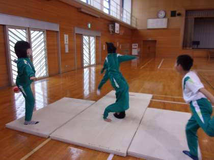 「もう少し低くして」「ここはぴたっと止まろう」などと、声を掛けながら動きを組み立てました。これまで練習してきた個人技がうまく生かせるようがんばっています。