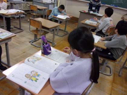 互いの人権を大切にすることについて考えました。外国からの友達との関わり方がテーマの教材文を読んで考えた後、「ともだち」という絵本を担任が読み聞かせました。肌の色、髪の毛の様子、家の有無など、違っていても友達という意味について、感想を伝え合いました。