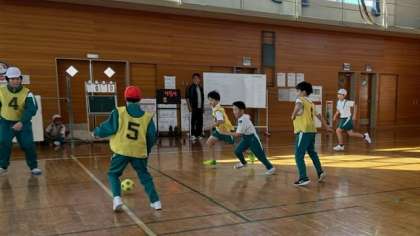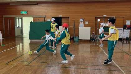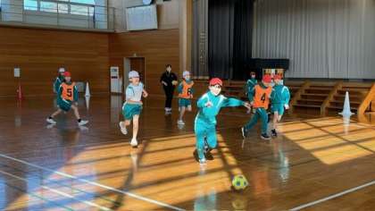 12月8日(金)3・4年生 体育の学習 公開日 2023/12/08 更新日 2023/12/08 3年生 サッカーに取り組んでいます。今日はグループやペアでパス練習をした後、試合をしました。名前を呼び合い、上手にパスをつなぐことができました。