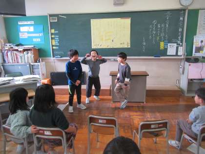12月21日(木)2年生 お楽しみ会 公開日 2023/12/22 更新日 2023/12/22 2年生 明日の終業式をひかえ、お楽しみ会をしました。自分の特技発表コーナーでは、野球物まね、ピアノ演奏、お笑いコント、コマ回しが披露され、盛り上がりました。その後、クリスマスバスケット(フルーツバスケットのクリスマスバージョン)とハンカチ落としのゲームをみんなで楽しみました。3学期も、元気に学習やスポーツをがんばりましょう。