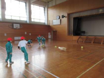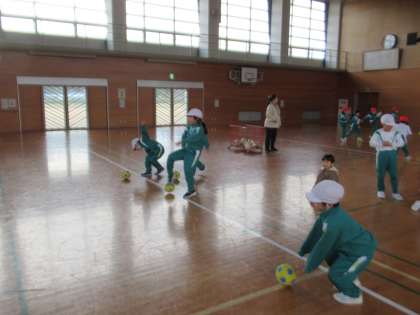 1月12日(金)1・2年生 体育の学習 公開日 2024/01/12 更新日 2024/01/12 1年生 2学期に引き続き、今日もボールを蹴る運動をしました。的にめがけて、ボールを蹴ります。うまく倒すことができるでしょうか。