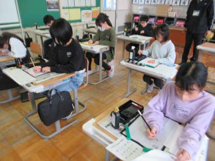 1月15日(月)6年生 書写の学習 公開日 2024/01/15 更新日 2024/01/15 6年生 今日は漢字からどのようにひらがなが生まれたのかを学習しました。ひらがなのもとになった漢字で、自分の名前を書いてみました。