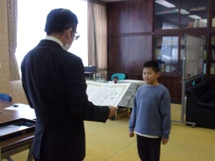 1月16日(火) 授賞伝達式 公開日 2024/01/17 更新日 2024/01/17 4年生 「絵で伝えよう!わたしの町のたからもの」に出品し、審査員特別賞を受賞した児童の授賞伝達を行いました。 進んで取り組んだ結果、その頑張りが認められ、大変すばらしいです。