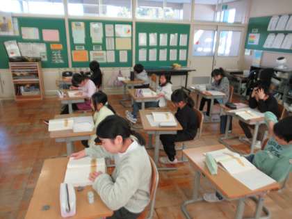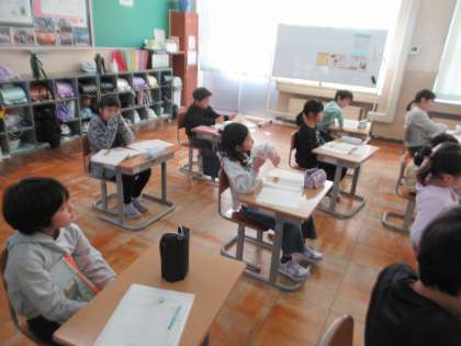 「ありのぎょうれつ」を読んで、段落ごとにタイトルをつけています。この段落にはどんなことが書かれているかな、どんなタイトルをつけようかなと、教科書を音読しながらみんなで考えました。