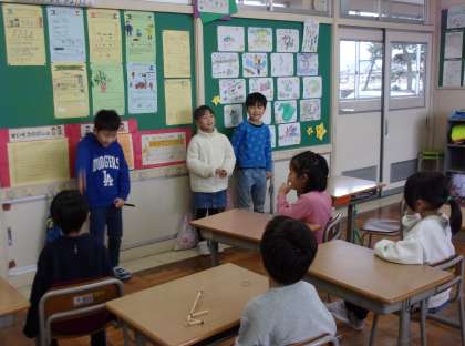 学級活動では、みんなのためにすることを、「係の仕事」と「楽しい活動」の2本立てで考えています。今日は、各係として、自分たちがすることとみんなにお願いしたいことを伝え合いました。「どんなところもきれいにします係」は、「汚れた場所をきれいにすると気持ちがいいから、僕たちはトイレや黒板の下を掃除します。女子トイレを手伝ってください」と、「いろいろチェック係」は、「水筒や袋のひもがはみ出ているとひっかっかるので、しっかりしまってください。私たちが声をかけます」と話しました。自分たちの役割に責任をもって工夫して係活動に取り組もうとしています。