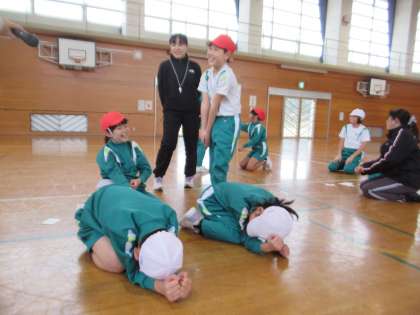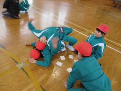 1月22日(月)3・4年生 体育の学習 公開日 2024/01/23 更新日 2024/01/23 3年生 テーマに合わせてなりきって運動する「なりきりタイム」。今日のテーマは「ホットケーキづくり」でした。「ホットケーキが焼ける」「ホットケーキにシロップをかける」「ホットケーキを切り分ける」など、引いたカードのお題に沿って、グループで楽しく体を動かしました。