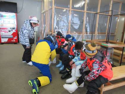 1月23日(火)スキー学習その1 公開日 2024/01/23 更新日 2024/01/23 学校行事 全校でスキー学習を行いました。バスに乗ってスキー場へ出発します。 開校式では、インストラクターさん、育友会や地域の指導ボランティアの方と自己紹介をして、スキー靴の履き方から丁寧に教えてもらいました。